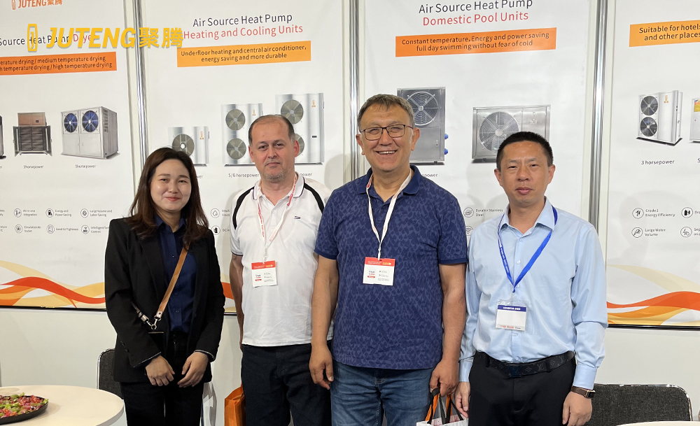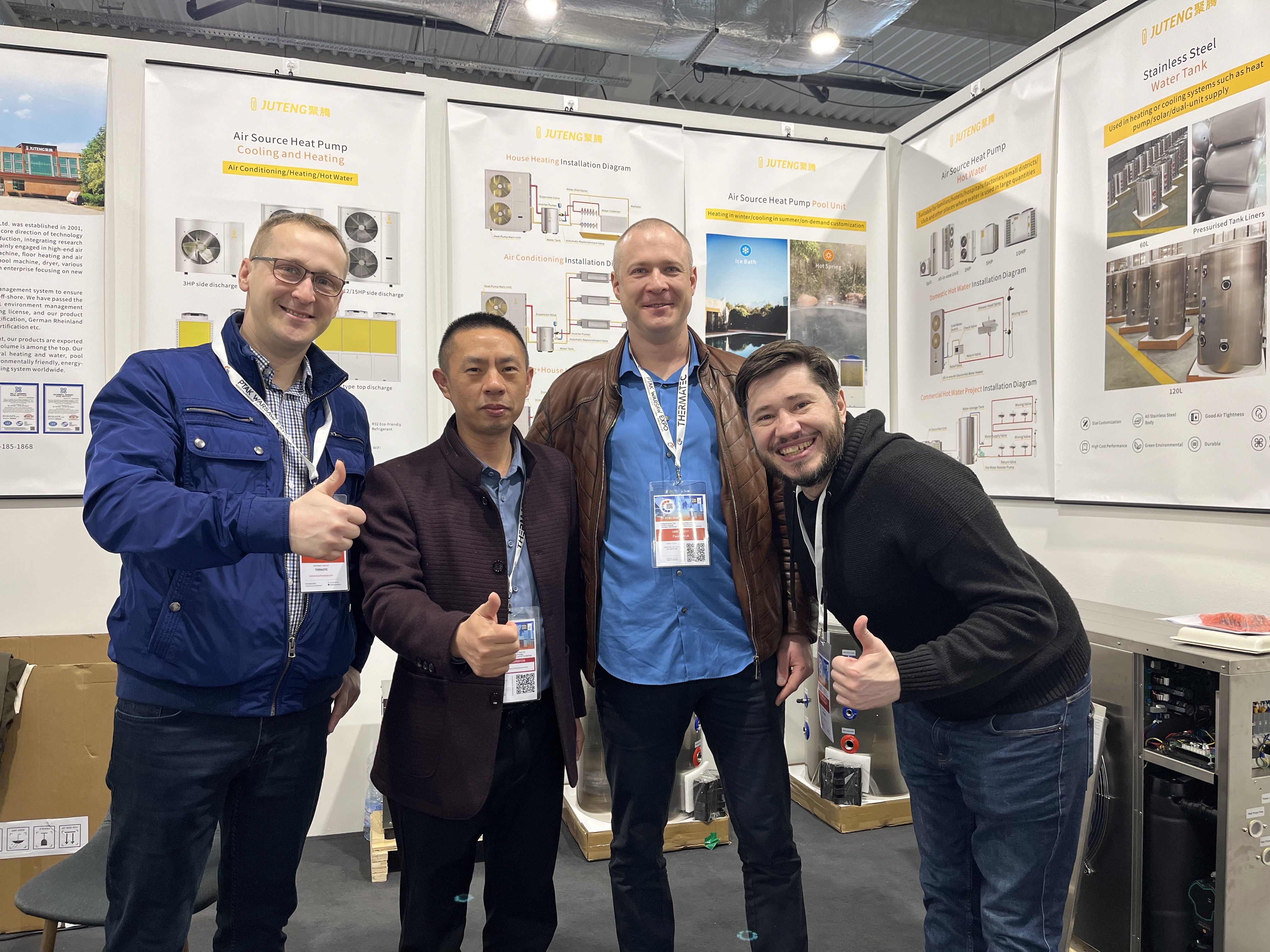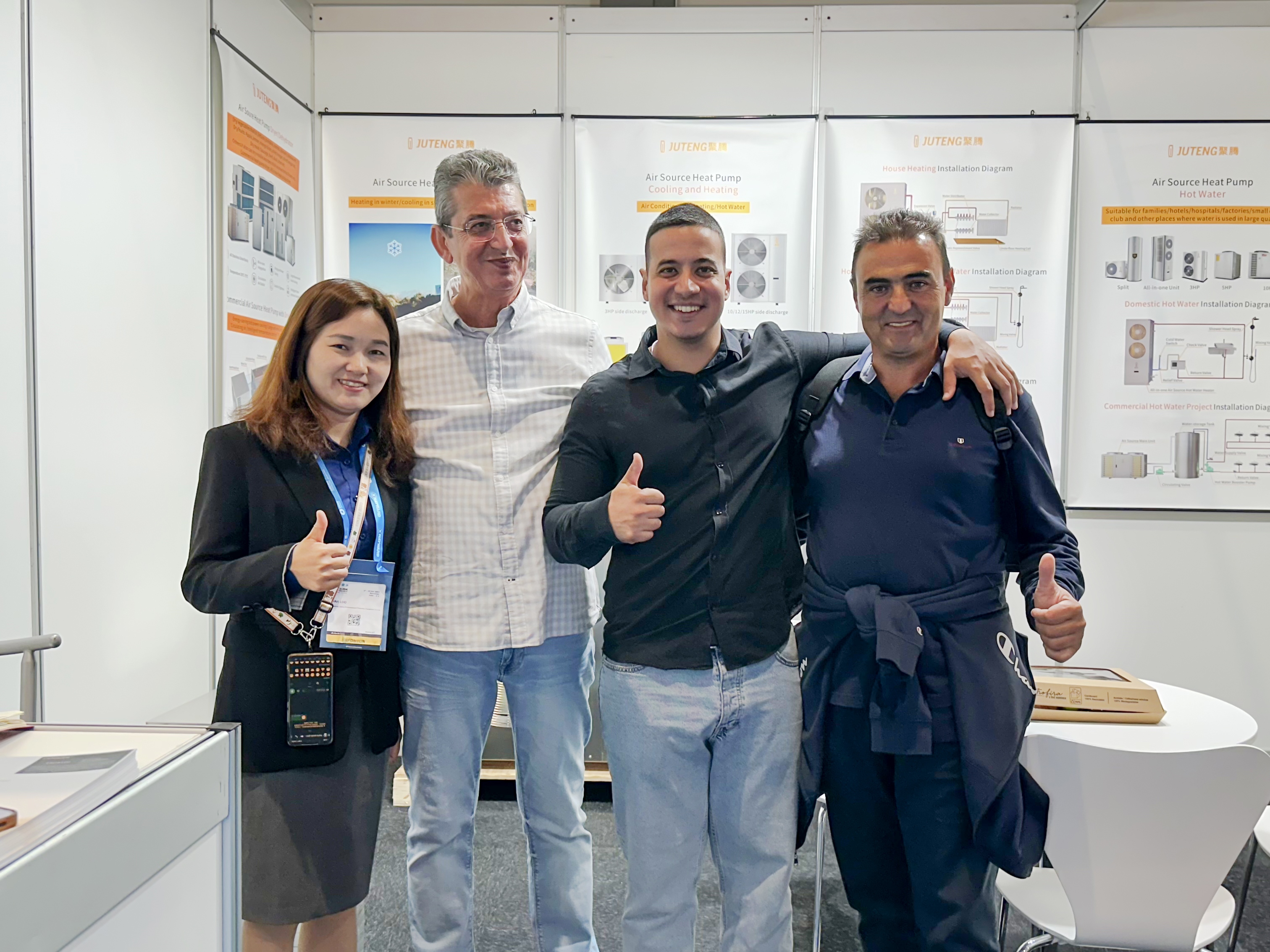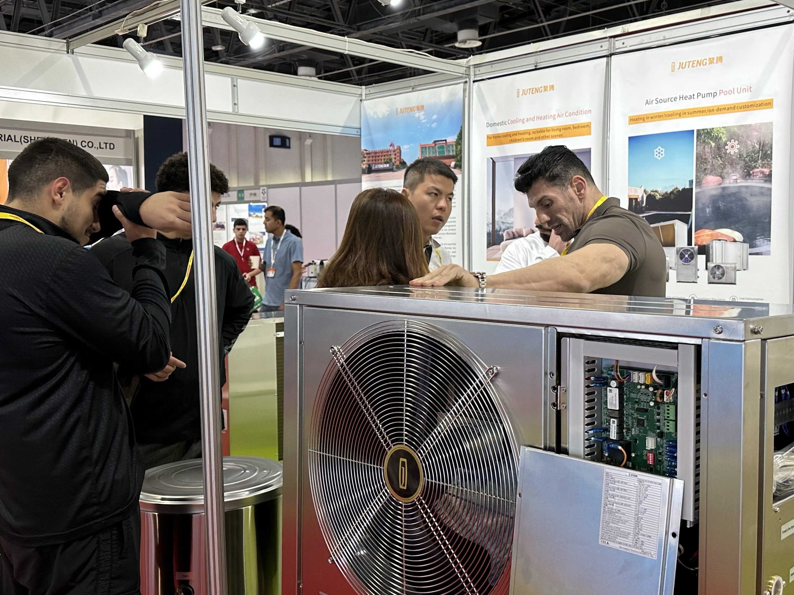 聚騰的創新研發成果在本次展會中閃亮登場——超低溫冷暖機、恒溫泳池機、家用熱水機等覆蓋歐洲多個熱銷品類的環??諝饽墚a品,因其獨特的不銹鋼整機造型設計、行業領先的研發專利技術以及多領域的空氣能解決方案,引起現場觀眾的濃烈興趣,釋放出合作交流的積極信號。